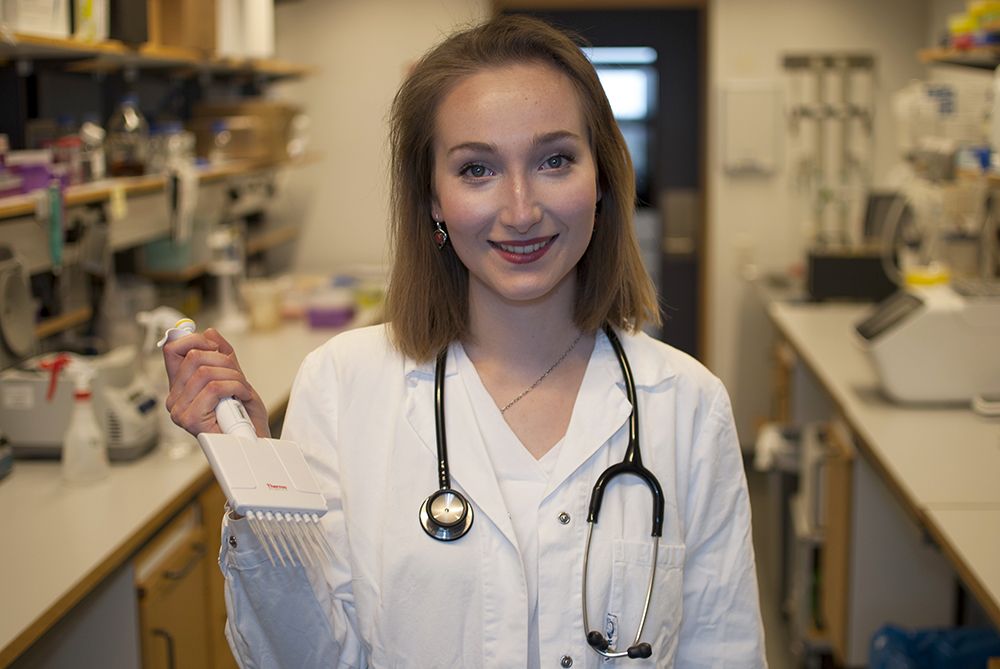 Therese ser möjligheter att i framtiden arbeta på sjukhus och forska samtidigt. Inom infektionsmedicin är sepsis viktigt att fokusera på, anser hon.